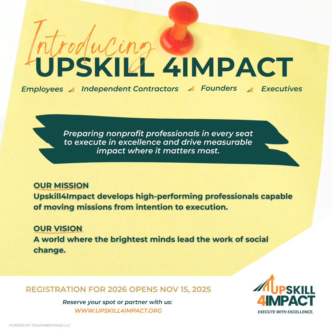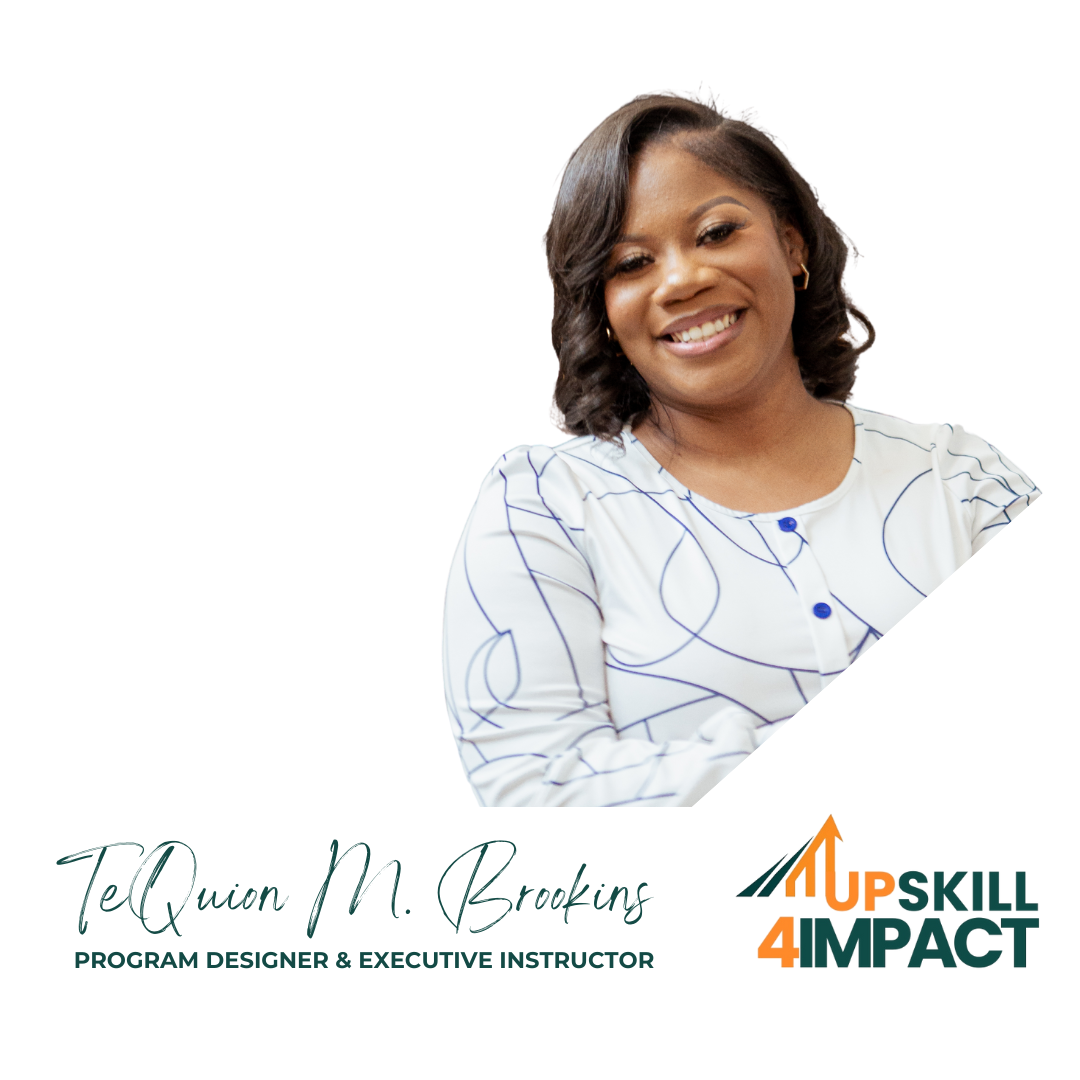 UpSkill 4Impact is guided by the leadership and expertise of TeQuion Brookins, a nationally respected strategist with more than a decade of experience advising over 2,000 nonprofits, foundations, and social enterprises across the world. Her academic training in Biochemistry and Molecular Biology and dual master’s degrees in Business Administration and Finance reflect a rare blend of analytical rigor and operational insight. TeQuion has supported mission-driven teams across the country, helping them strengthen systems, improve performance, and execute with excellence. Every course is shaped by this depth of experience, offering learners practical, real-world guidance they can apply immediately.